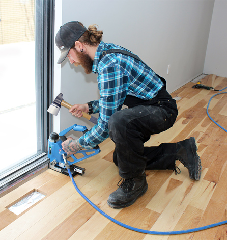 The EDGE is designed to blind nail as close as 2” to the end wall at 45° with the same holding power as the field. Used only with the EDGE nails, this system is designed for most solids boards and also engineered boards with a hard core.
